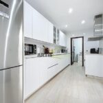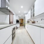 - Azulejos de gran formato, en color blanco en zonas de trabajo aportando luminosidad y tonos cálidos en baño y aseo.